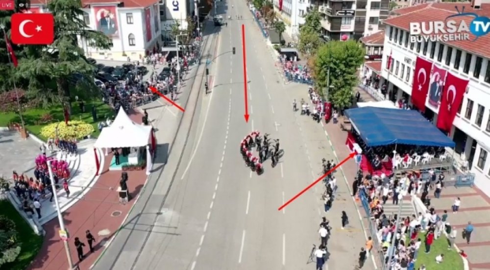 Bursa Valiliği’nin düzenlediği Zafer Bayramı kutlamalarını Bursa Büyükşehir Belediyesi’nin sosyal medya kanallarından izleyeyim dedim, bir fotoğraf var ki…